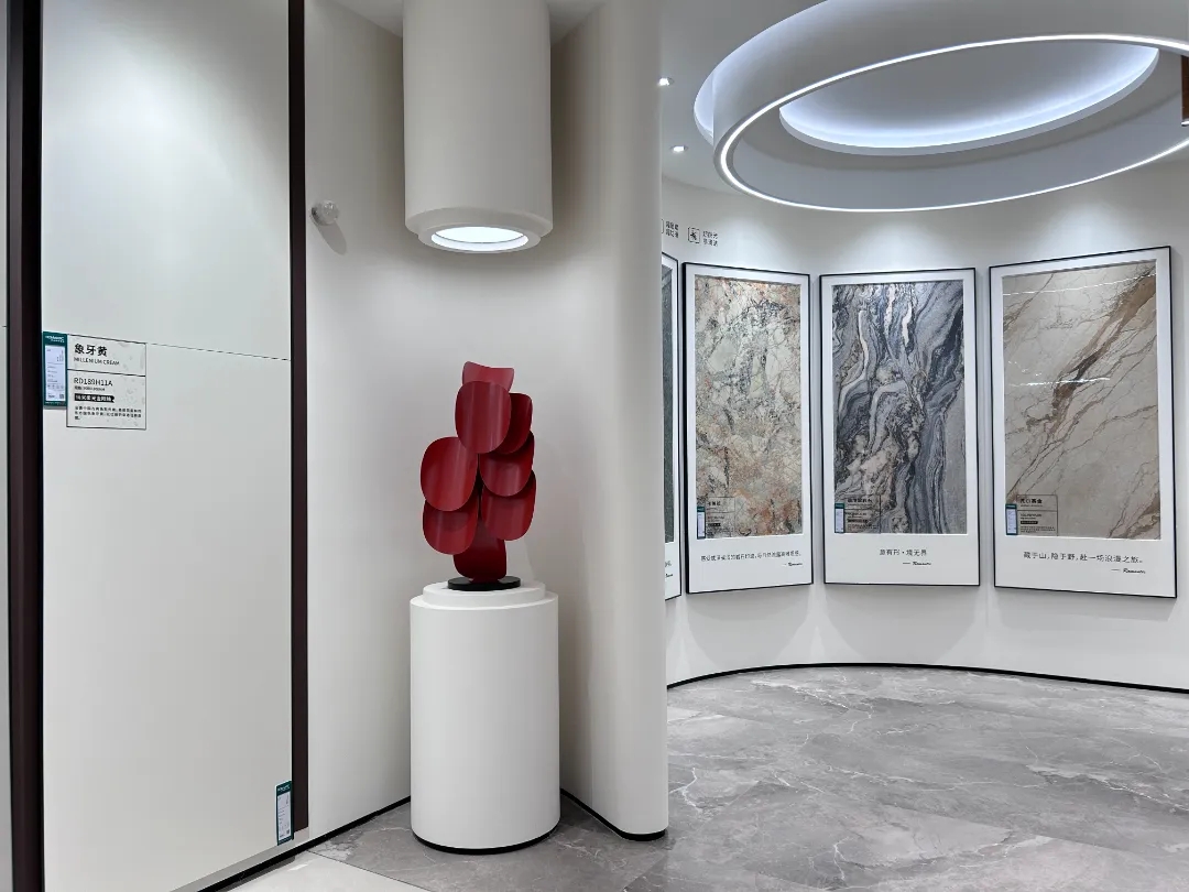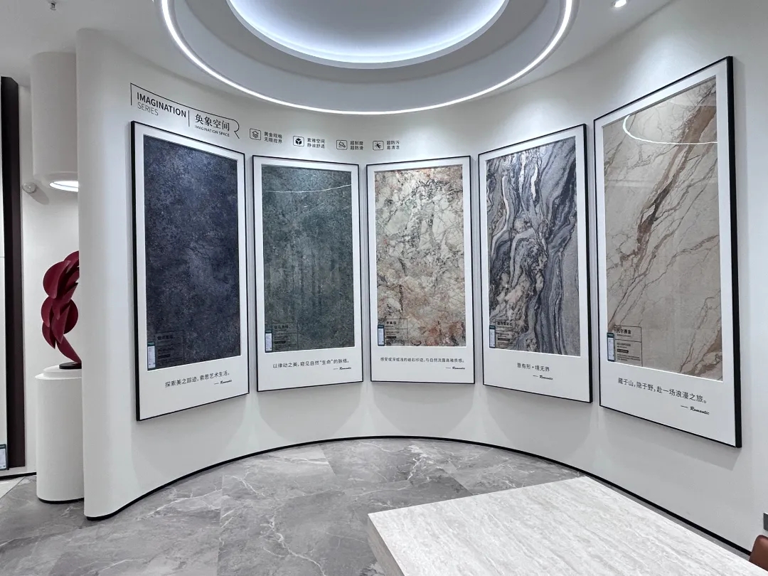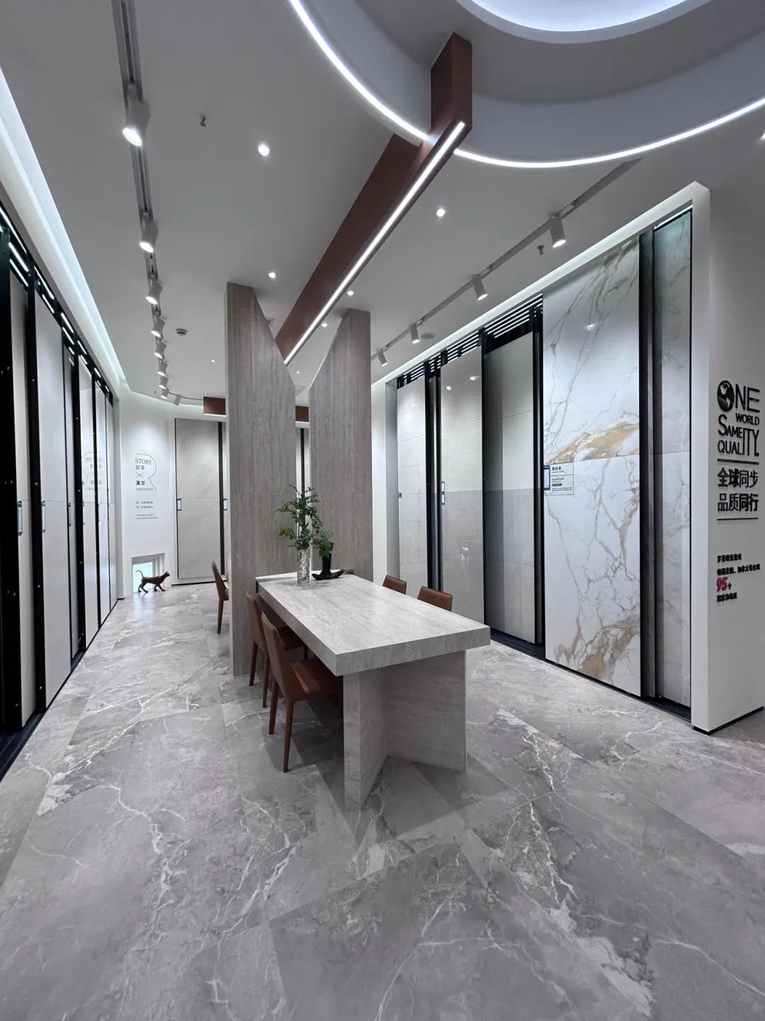 ROMANTIC CERAMICS YILIAN showroom, innovation and breakthrough in the integration of art and technology. Advanced color matching, antique texture space, through the pure space language, interprets the delicate relationship between the material and space of ROMANTIC products.