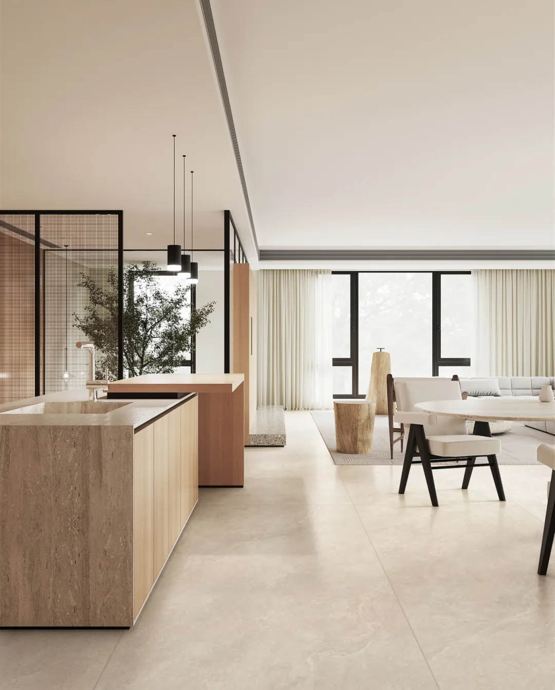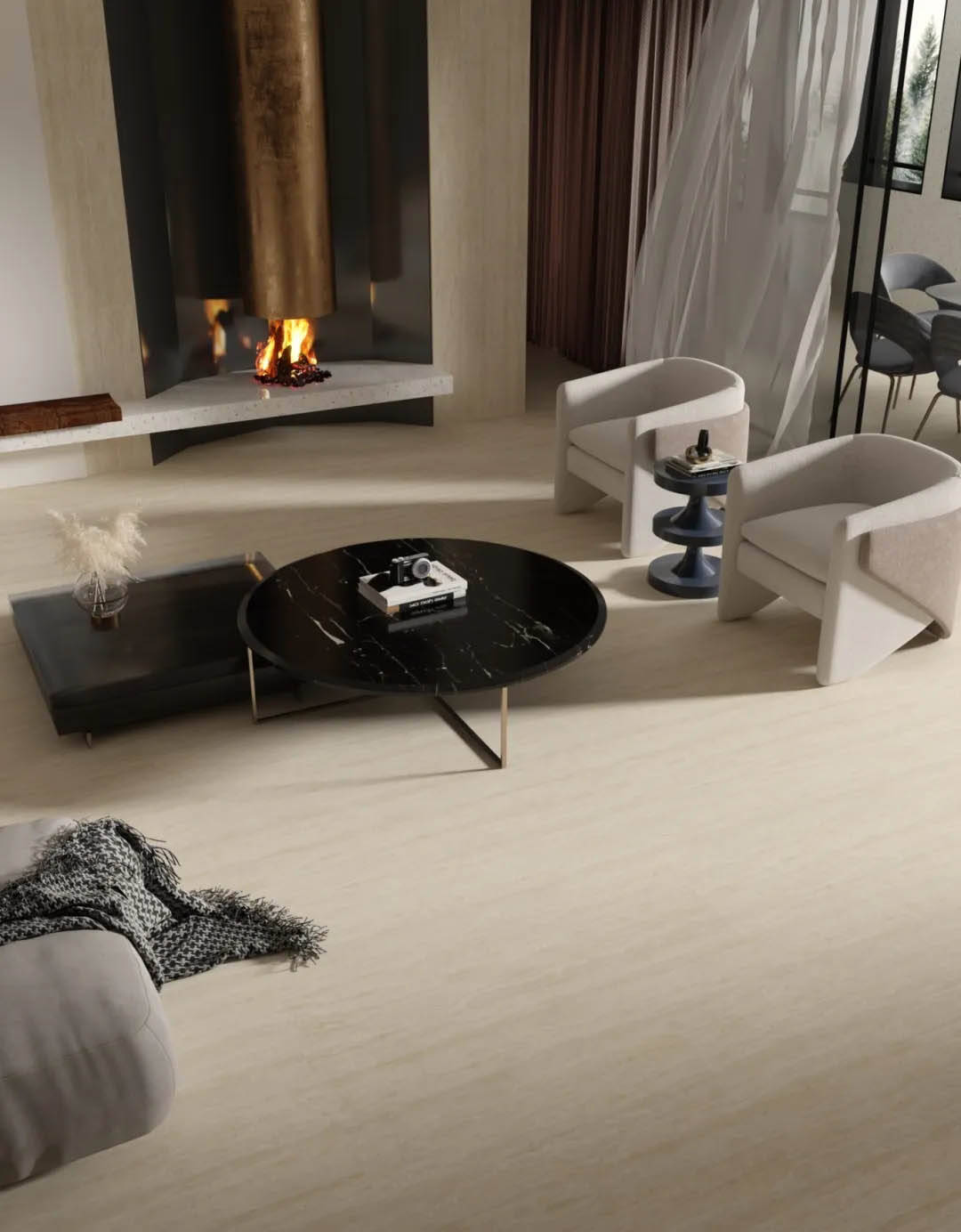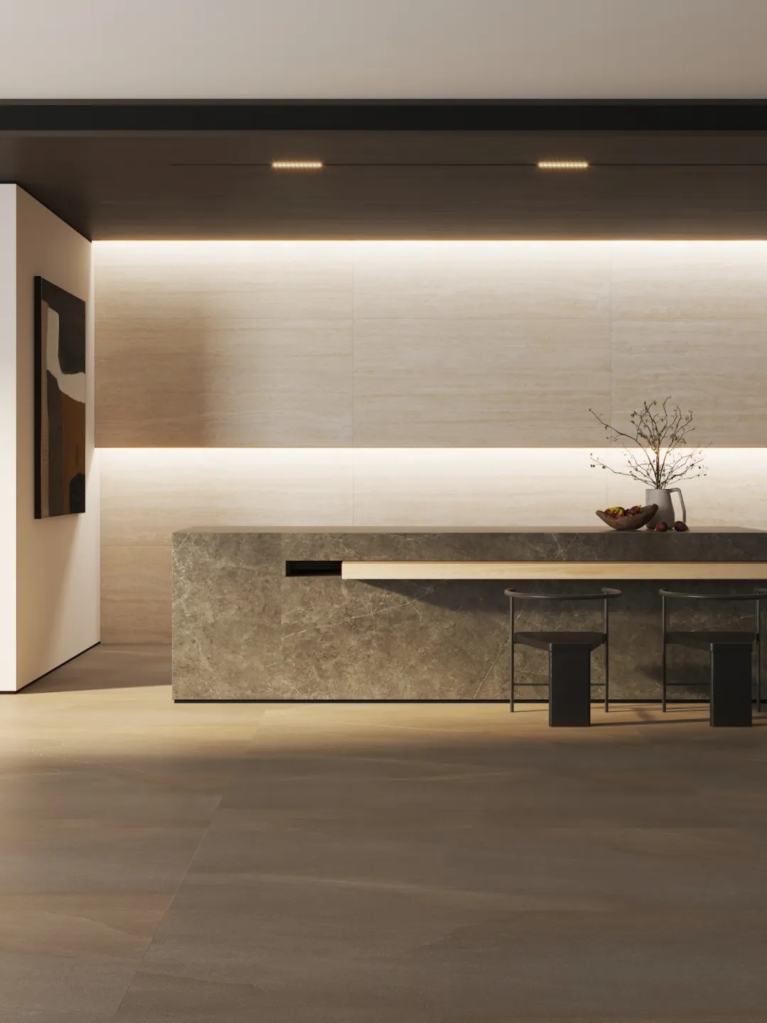 靈感源自意大利米蘭的天然洞石,清冷凜冽的米灰色,層疊錯落的豎條紋理肌理,斑駁細膩的孔洞,流淌著【米蘭洞】歲月靜好的時光印痕,潤澤而豐富的質感,讓空間既時尚又富有歷史感。